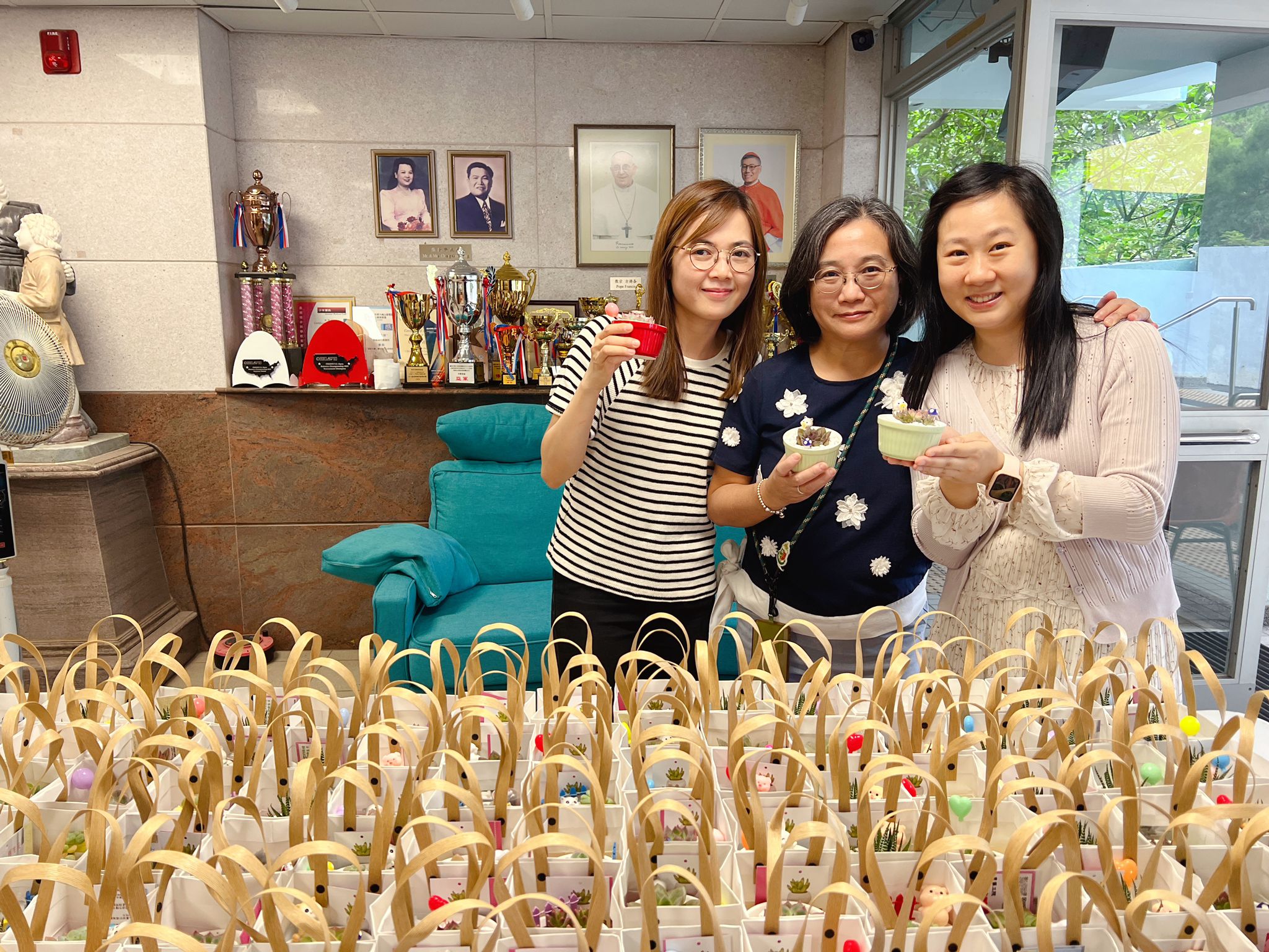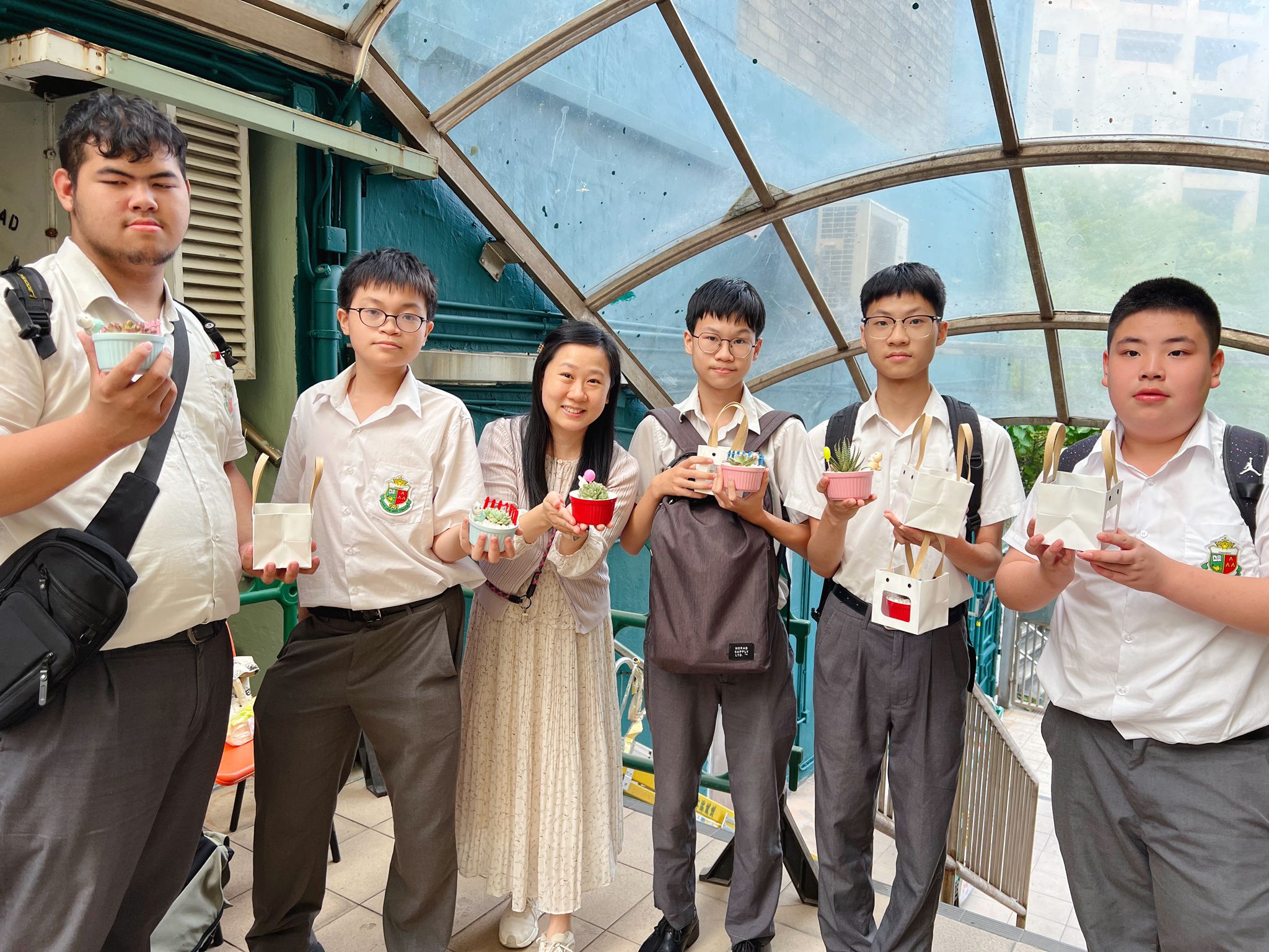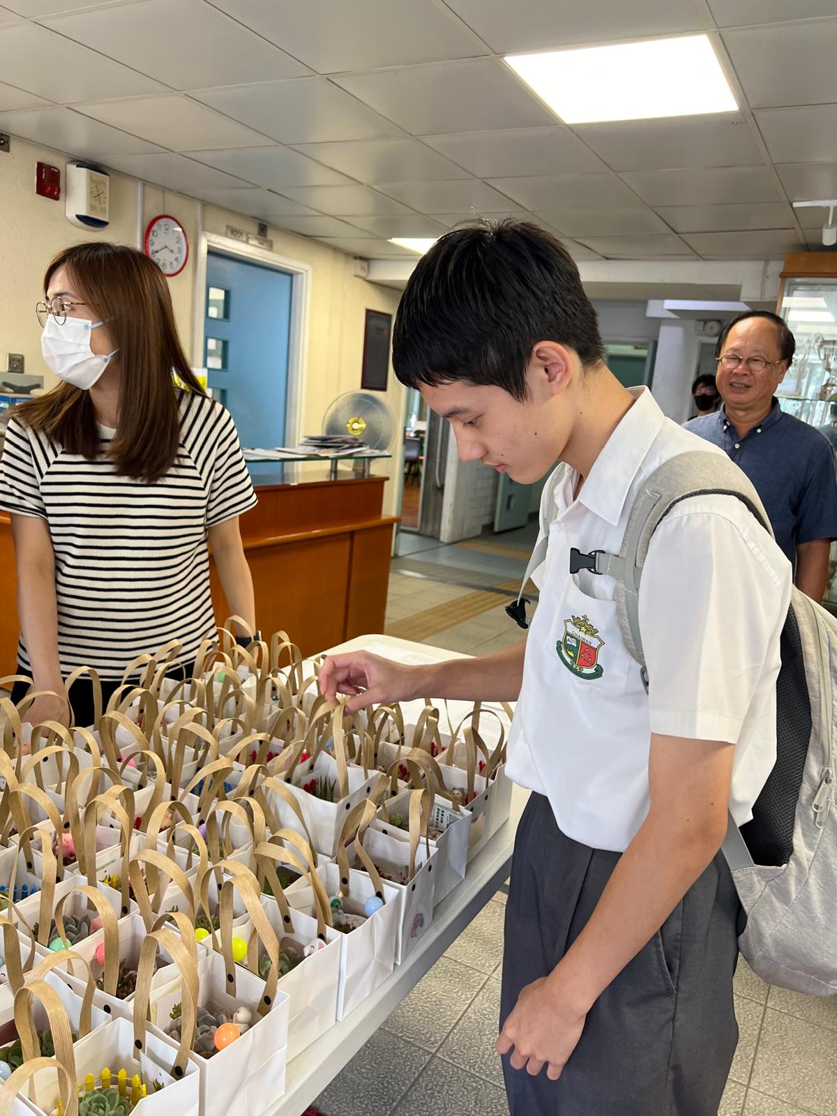 10/10是國際精神健康日,為提醒同學注意精神健康,學會欣賞美好事物,本校東華三院社會服務部駐校社工陳姑娘和麥姑娘,為老師同學預備了數百盆多肉植物,送贈心意之餘,也讓同學藉此陶冶性情,移情養性。 是日放學時分,兩位社工姑娘分別在前後門擺放盆栽,供同學離校時拿走。不少同學駐足停留,細意選擇,更有同學多拿一盆,表示會贈予家人。姑娘亦有走訪個別班級,親自派發盆栽,同學反應也十分熱烈,氣氛良好。 不經不覺開學已個多月,社工的小禮物為校園生活平添色彩。希望振興仝人身心健康,繼續享受繽紛的校園生活。