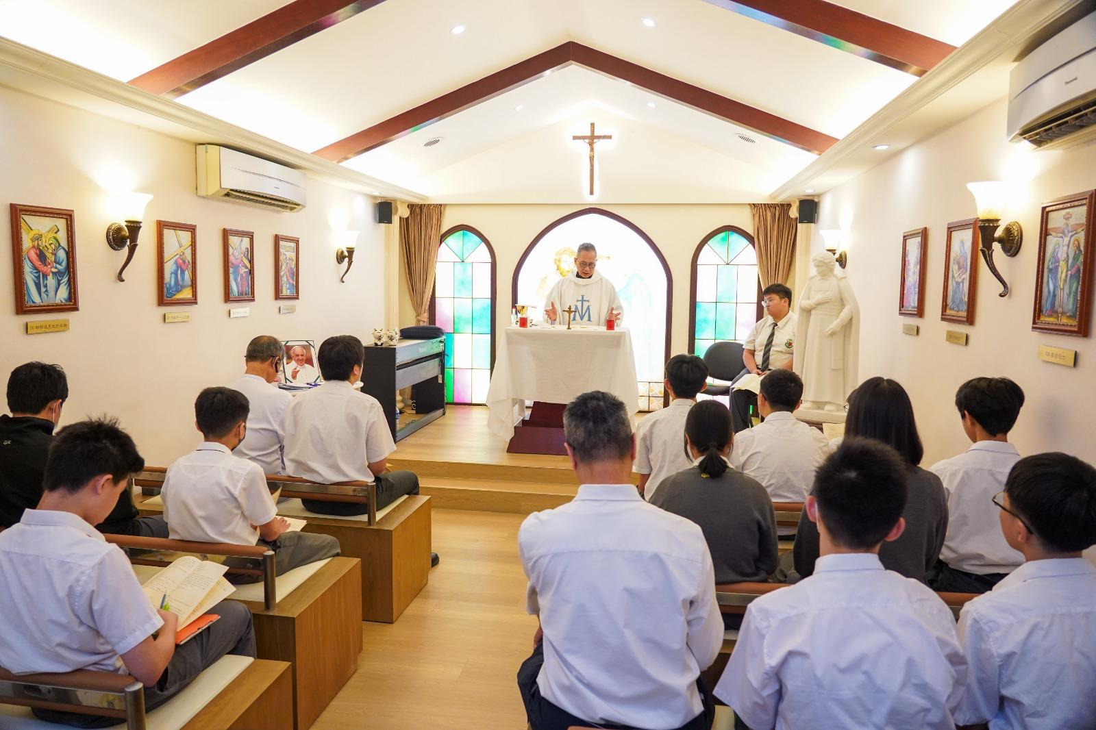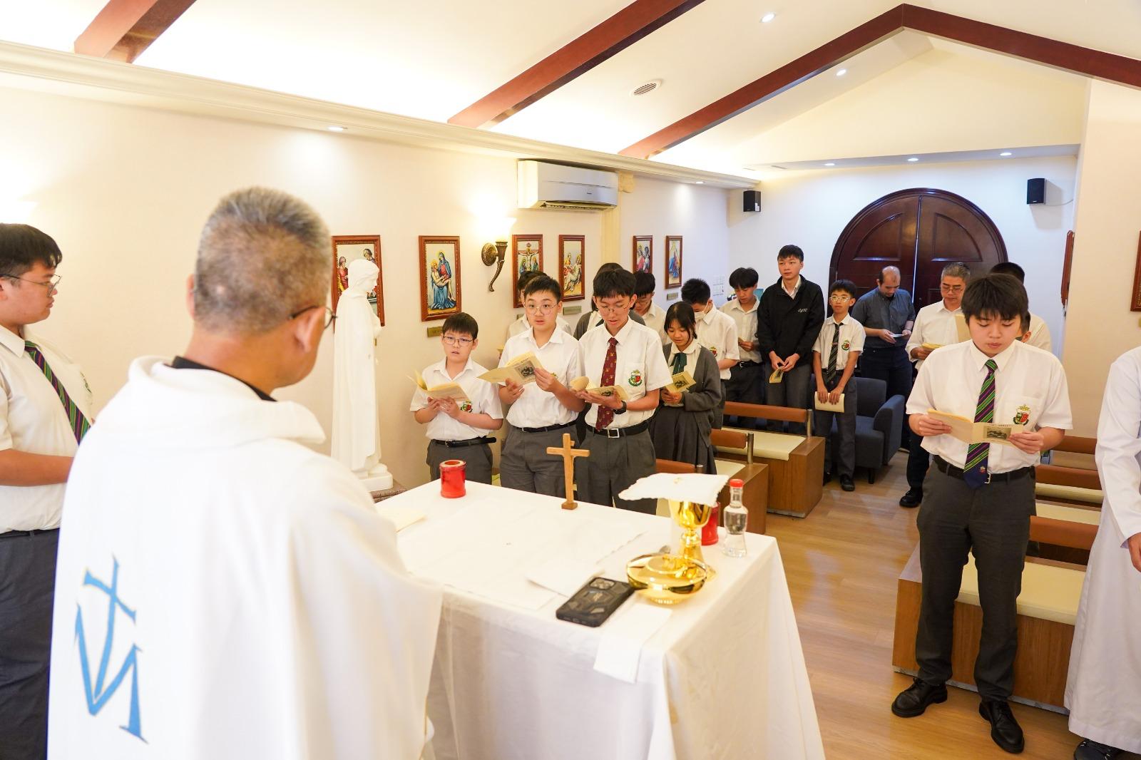 為紀念會祖聖若翰喇沙的誕辰,本校於祈禱室特別安排了一台感恩祭,十分榮幸邀得海星堂譚永明神父主禮及Brother Dennis、黃校長、宗教老師在我們當中 。譚神父在講道時提醒我們藉著每年慶祝的逾越奧跡,獲得了復活的希望,並要效法會祖聖若翰喇沙,以信德熱誠生活,實現耶穌基督的教導。