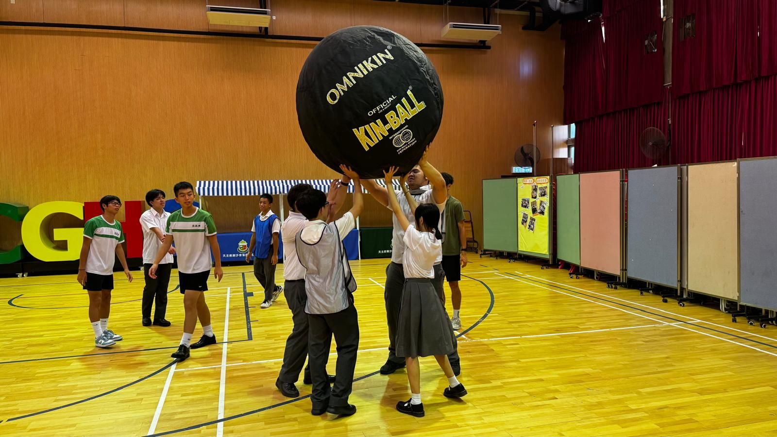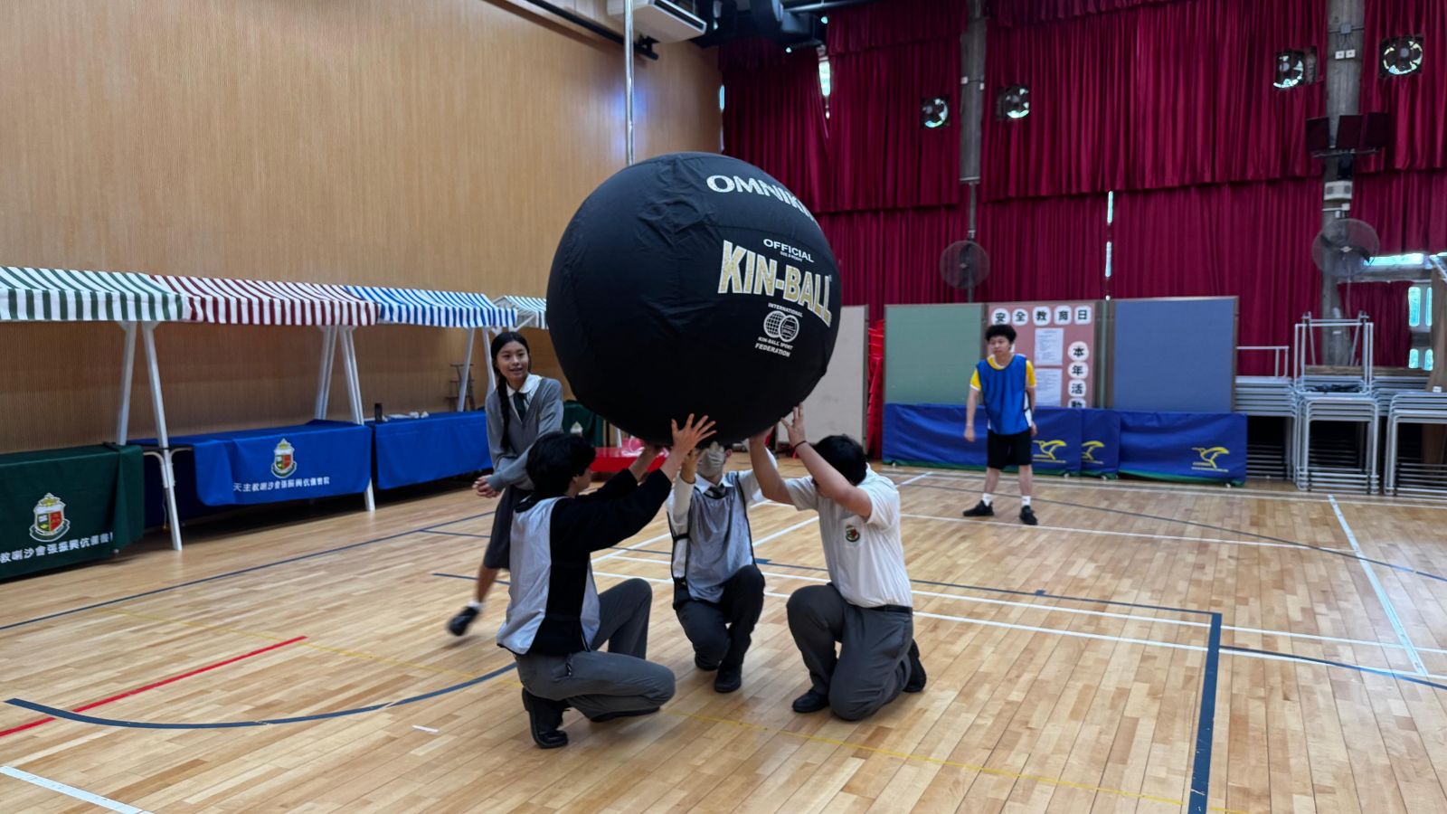 Kin-Ball 的中文是「健球」,它是一項起源於加拿大、強調團隊合作的團體運動,特色是使用直徑約1.22公尺的大型尼龍球,並且比賽時有三支球隊同時在場上進行。