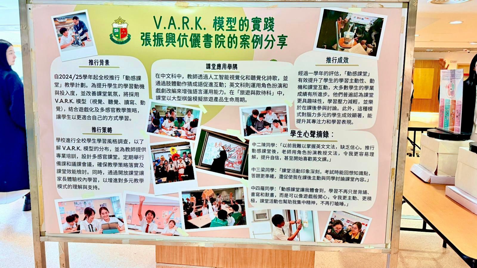 演講廳外,展示了由教大佈置的學與教資訊,其中包括本校採用V.A.R.K.模型的案例分享,讓大學來賓有機會深入了解學界有關學習風格的研究與實踐。